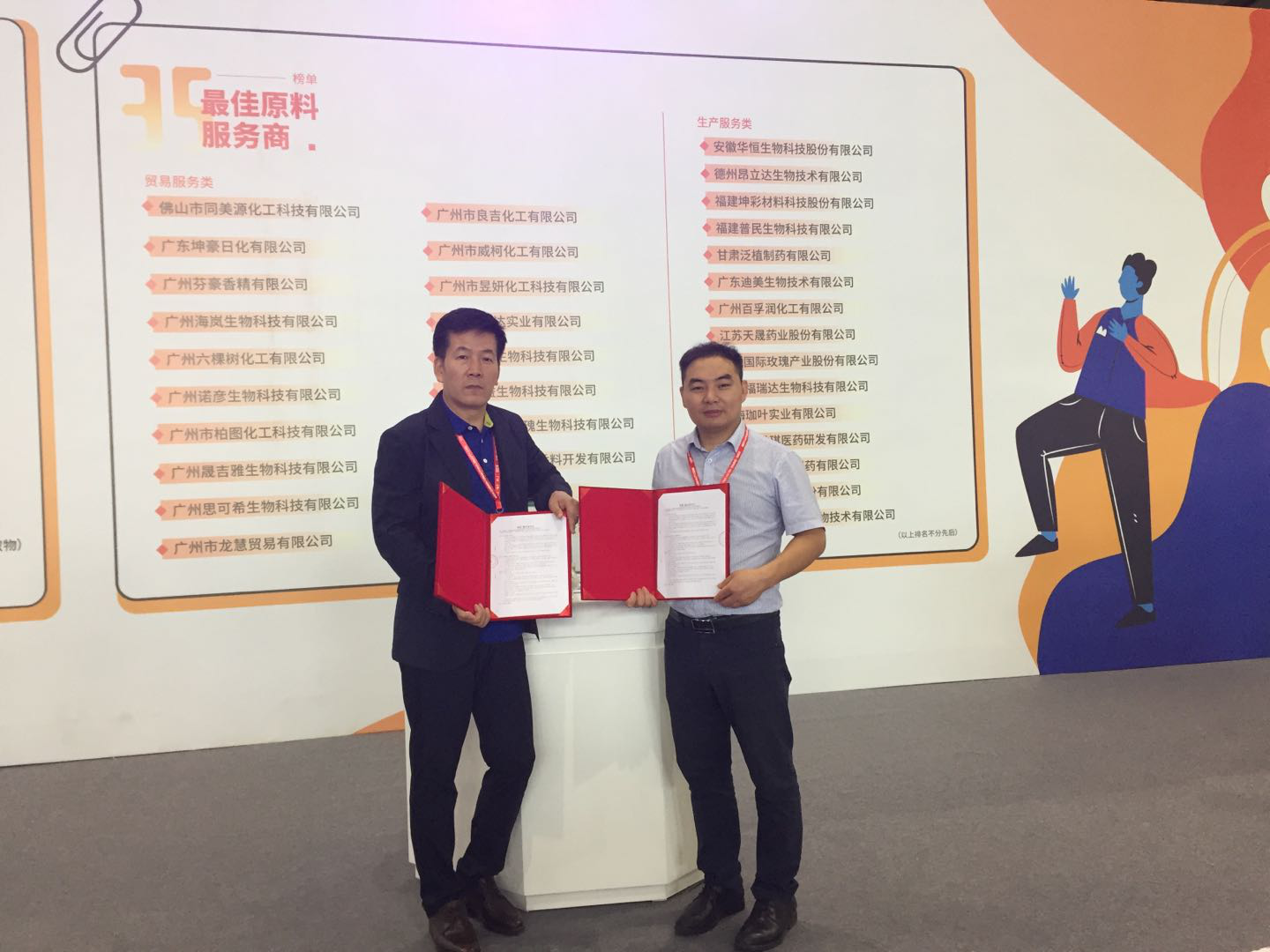 四川吉晟在展會(huì)現(xiàn)場(chǎng)與韓國(guó)進(jìn)出口協(xié)會(huì)會(huì)長(zhǎng)簽下美容多肽出口合作協(xié)議。